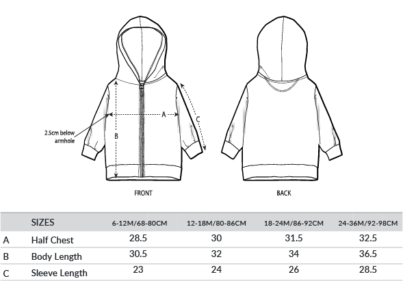 Set-in sleeve. Lined hood in single Jersey. Single Jersey tape at inside back neck and at inside of zip. Nylon coil-reversed zip at centre front. Two-sided zip guard at top of zip. Self-fabric half-moon at back neck. 1x1 rib at sleeve hem and bottom hem. Certified GOTS, Vegan, Fairwear, OEKO-TEX® Organic